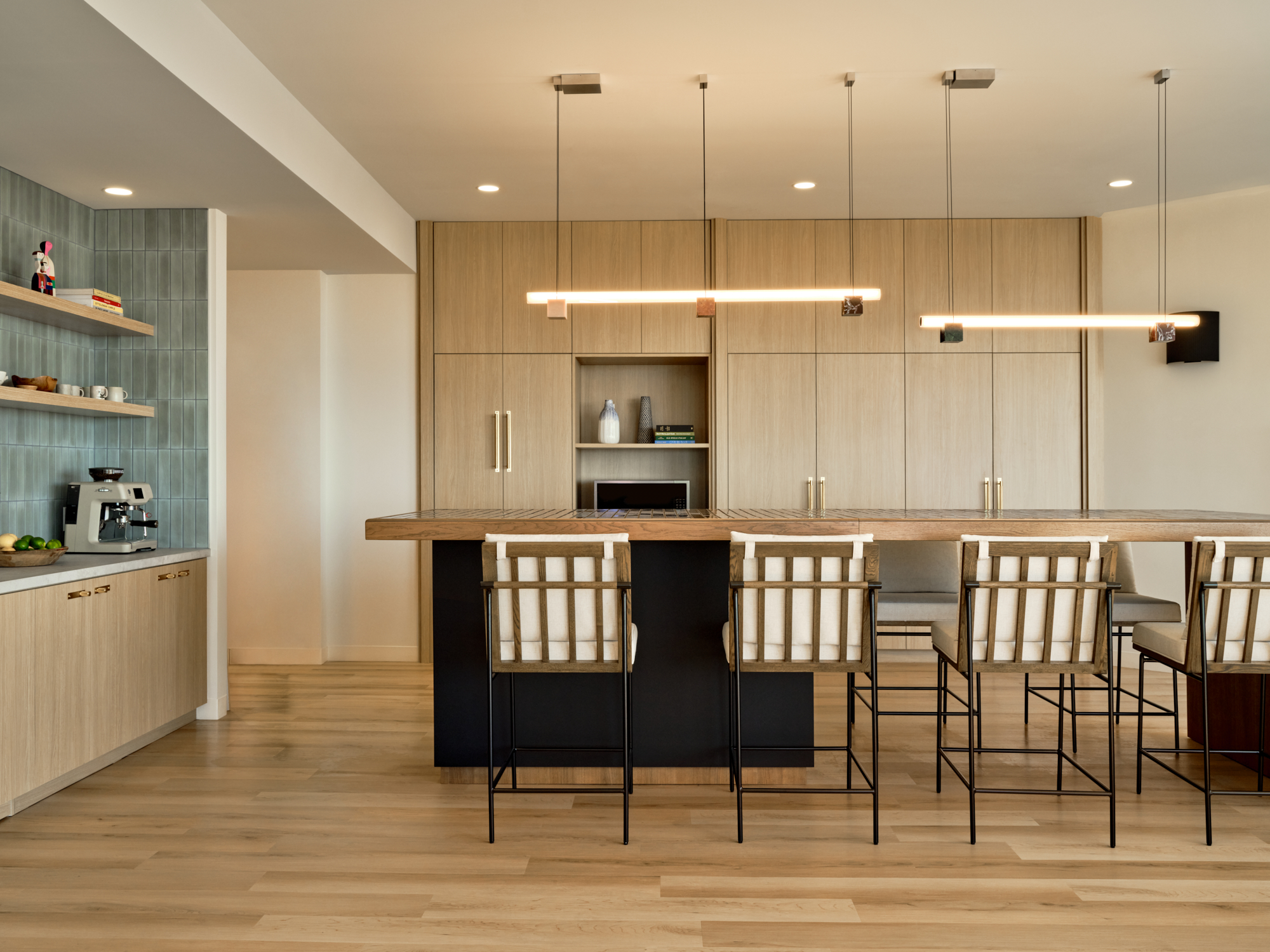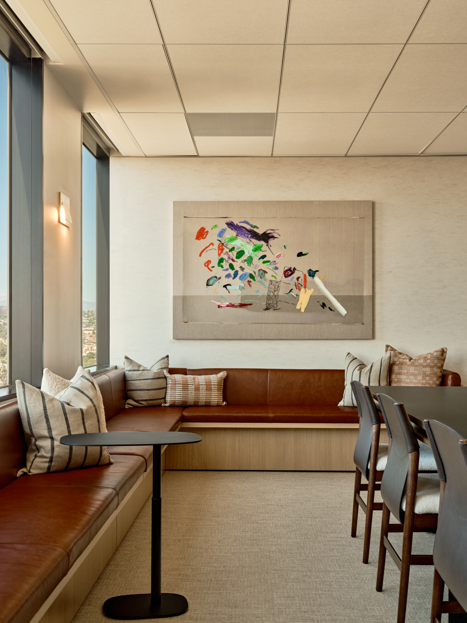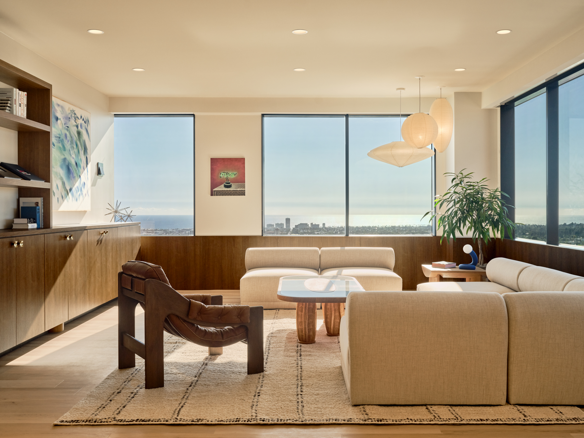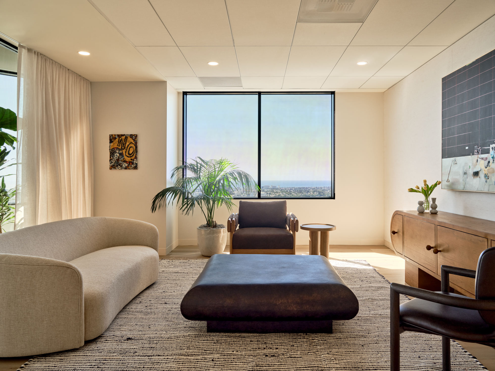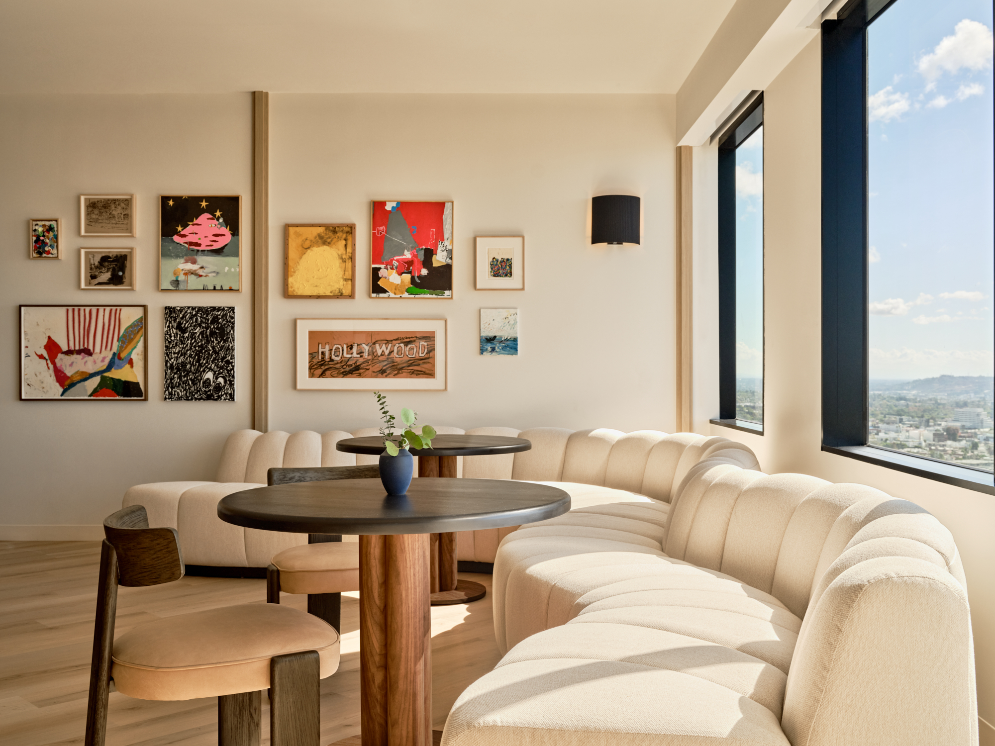 Inspired by Southern California modernism, the space blends warmth, texture, and light with moments of color and play. It feels part home, part hotel, part creative studio.